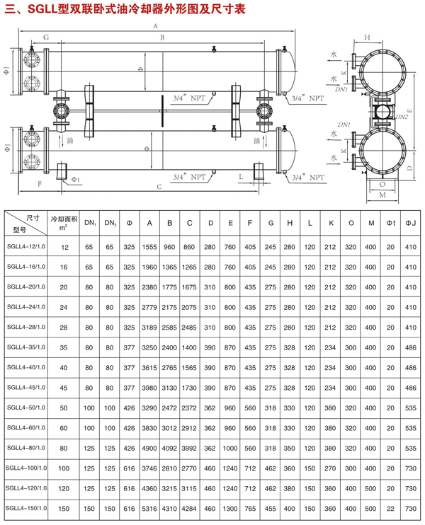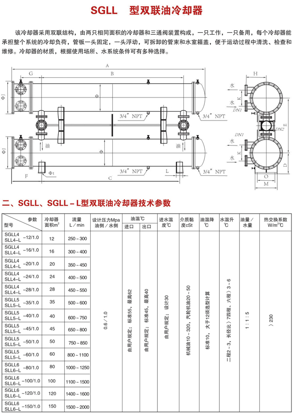 SGLL型雙聯立式油冷卻器